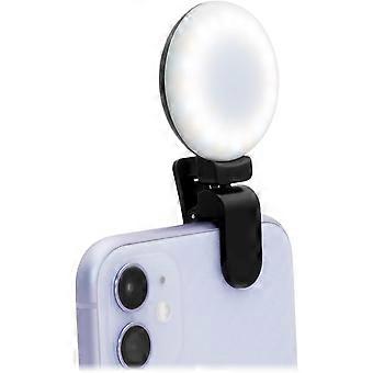 مشبك ضوء حلقة سيلفي (قابل لإعادة الشحن) - ضوء حلقة سيلفي للهاتف أو الكمبيوتر المحمول - أسود