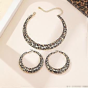 قلادة أنيقة بطبعة الفهد ومجموعة قرط قلادة وقرط طباعة ليوبارد أنيقة ومجموعة قرط ملحق أنيق للتواريخ
