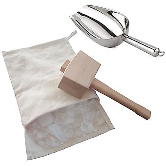 Puinen cocktailsekoitin, puujäämurskain, jäävasaravasara ja jääpussi uudelleenkäytettävä