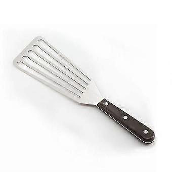 ملعقة السمك مع مقبض خشبي الفولاذ المقاوم للصدأ ملعقة السمك مشقوق ملعقة السمك فراي المطابخ مجرفة للحوم الشواء (1PC)