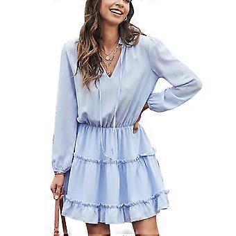 كم طويل V الرقبة فستان صغير عارضة طبقات الكشكشة الدانتيل فستان انسيابي للمواعدة