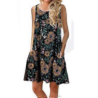المرأة طباعة مستديرة الرقبة خزان اللباس فضفاضة عصرية أنيقة بلا أكمام اللباس مع جيب للمواعدة