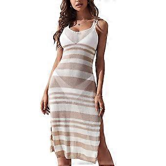المرأة التستر على اللباس مخطط سبليت الفخذ متماسكة Bodycon كريس عبر الظهر بدون أكمام ميدي اللباس