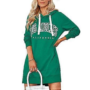 فستان طويل الأكمام طباعة جولة الرقبة جيب متوسط الطول فستان مقنع للنساء