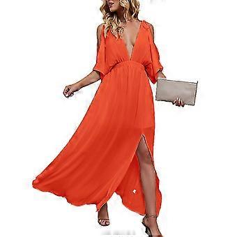 فستان طويل للنساء عميق على شكل V رقبة انسيابي من الشيفون فستان صيفي أنيق عالي الانقسام للإناث