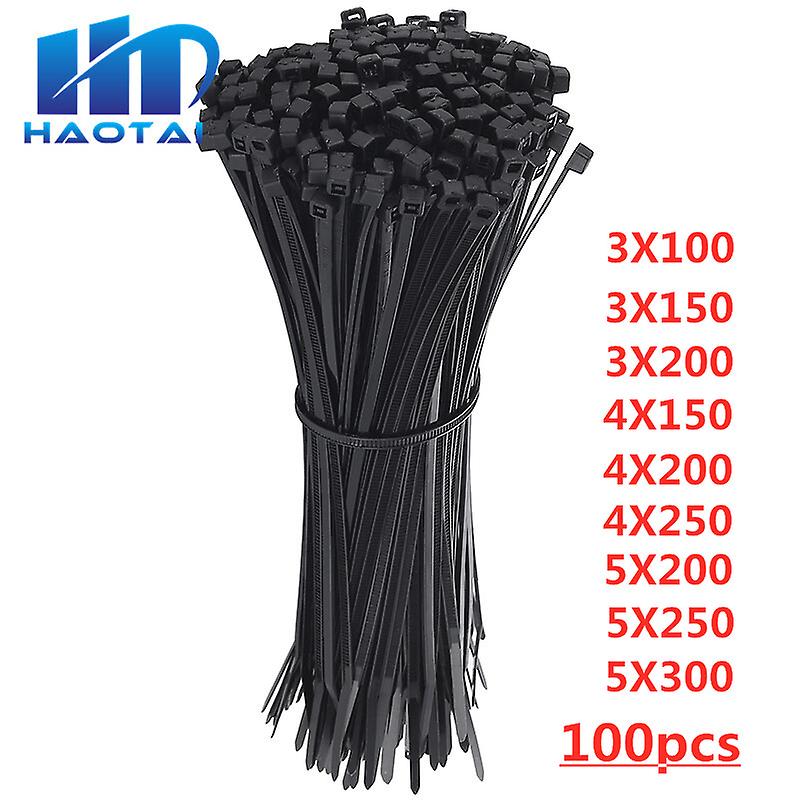 Self-locking Plastic Nylon Wire Cable Ties 100pcs Black Cable Ties Fasten Loop Cable Various Specifications
