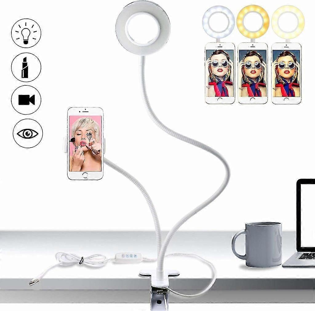 Selfie Ring Light with Clamp Stand Phone Holder for Desk Gooseneck Mount for Live Streaming Video Shooting Make Up