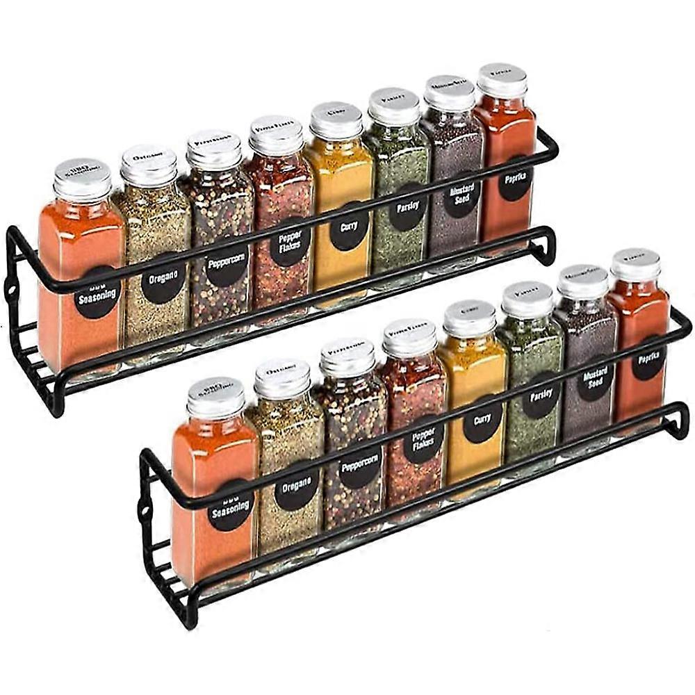 Set of 2 wall-mounted spice racks, space-saving kitchen shelf with adhesive or screw install, ideal for bottles, herbs, pantry, cabinet, or wall