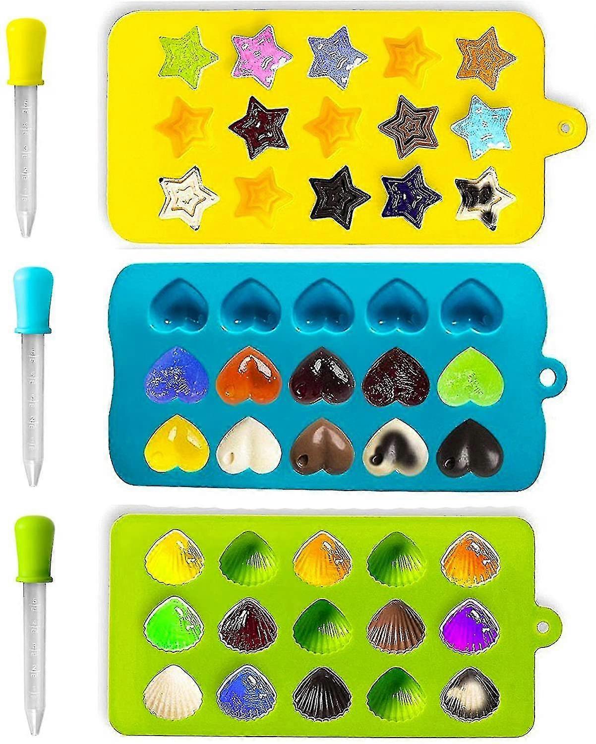 Set of 3 Silicone Ice Cube Molds in Heart, Star, and Shell Shapes, Perfect Ice Trays for Making Fun Ice Cubes