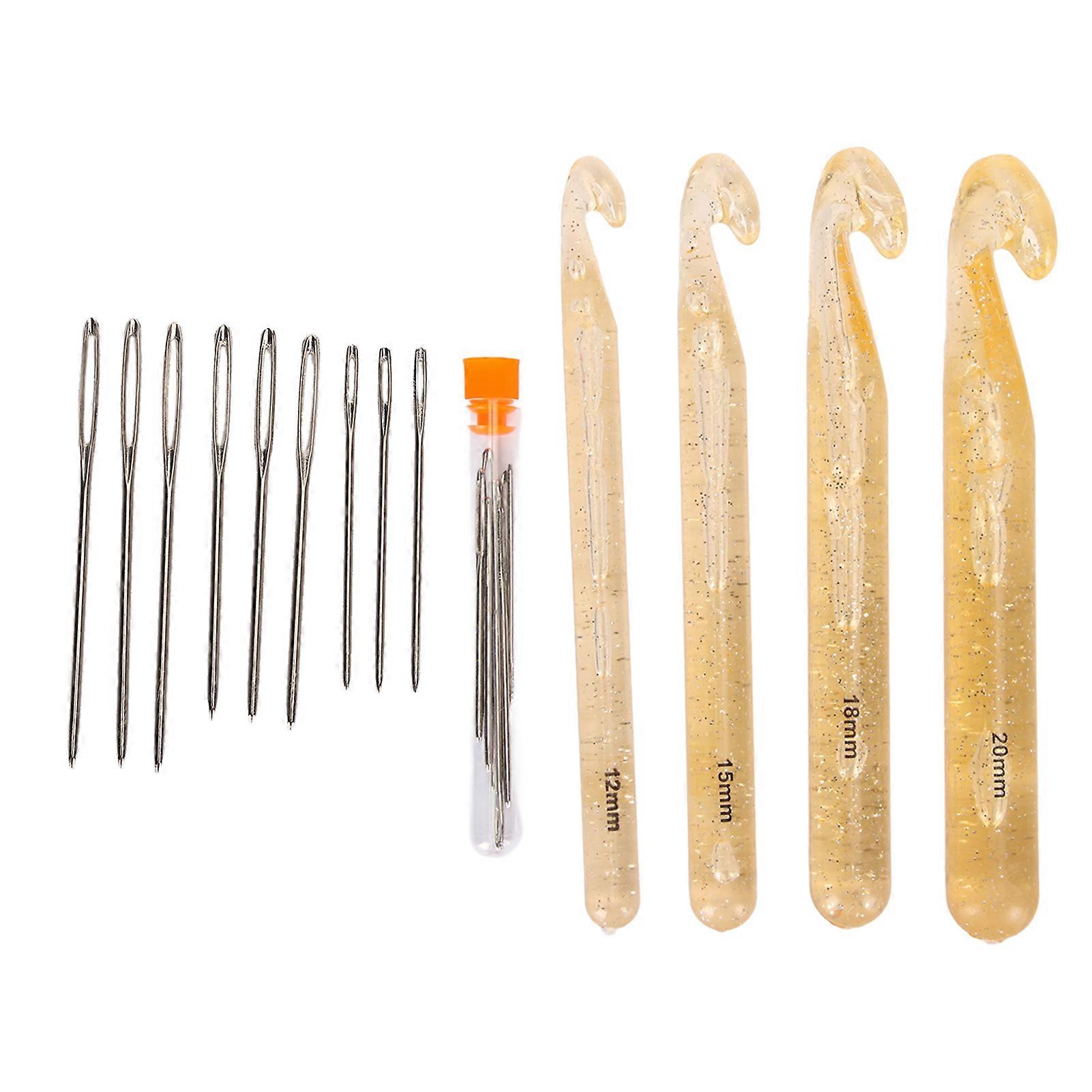 Set of 4 large crochet hooks from 12 to 20 mm, ergonomic handle, for blankets, hats, rugs, pillows