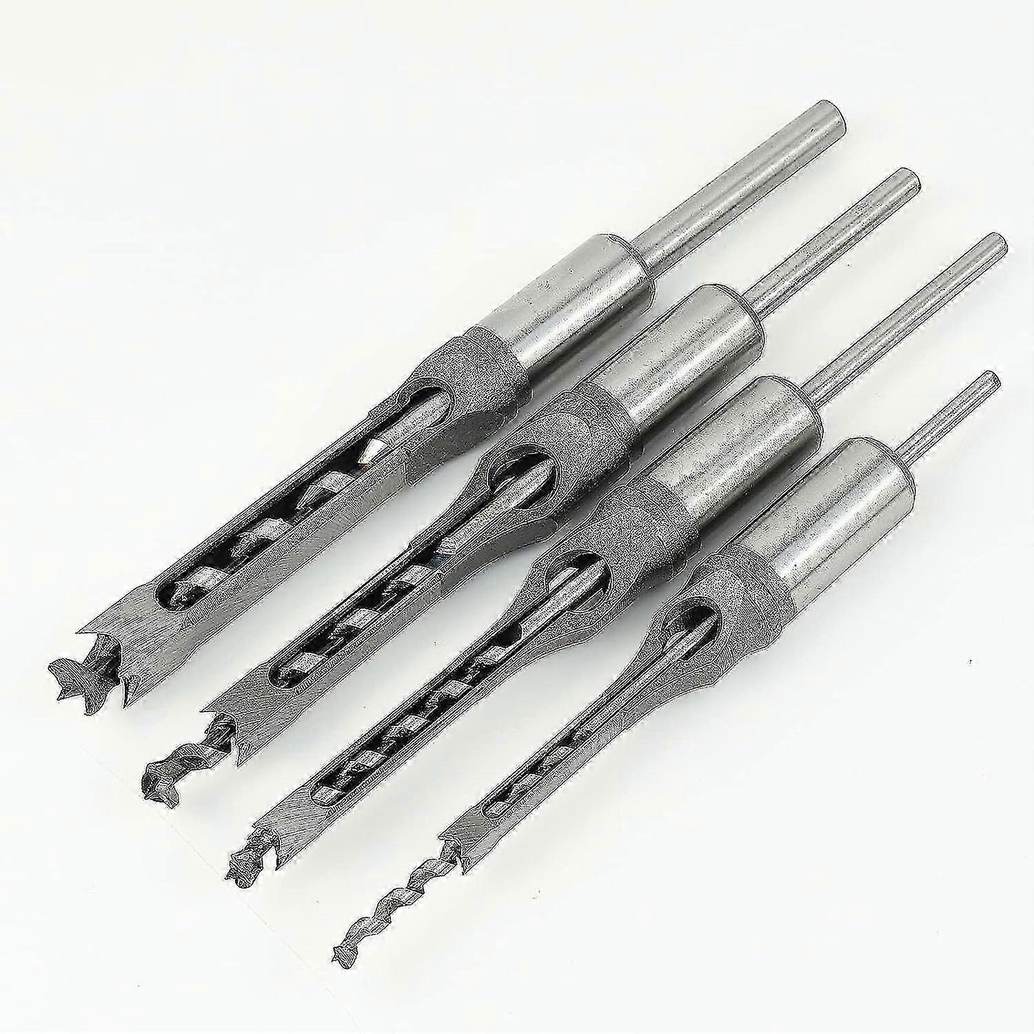 Set of 4 Square Hole Drill Bits, Steel Hollow Chisel Carpentry Tools Set for Square Hole Saw Wood Drill Bits Square Hole Drill Bit Mortising Chisel, 1