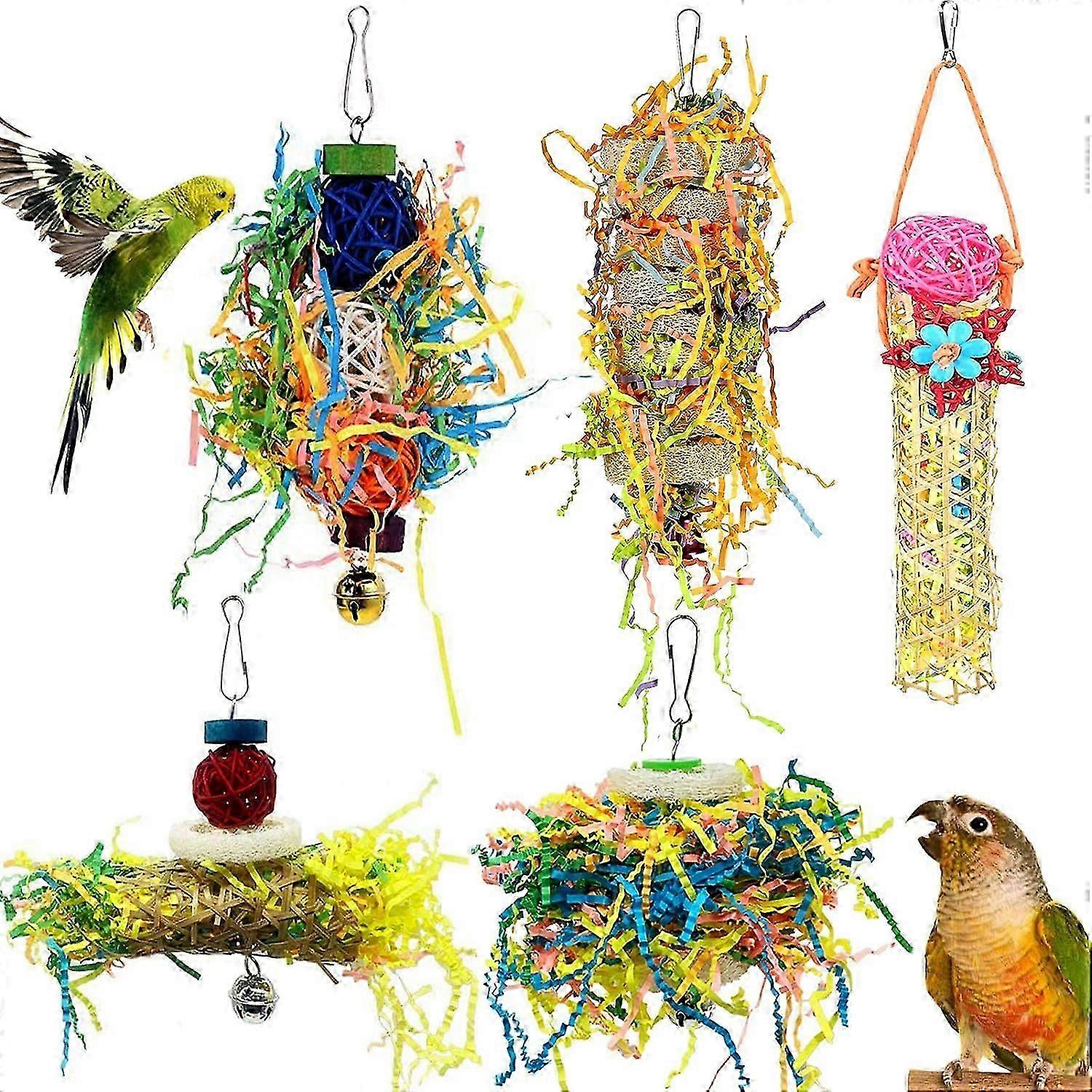 Set of 5 Bird Shredding Toys for Parrots, Chewable Hanging Toys for Parrot Cages, Shredder Toys and Accessories for Bird Enclosures