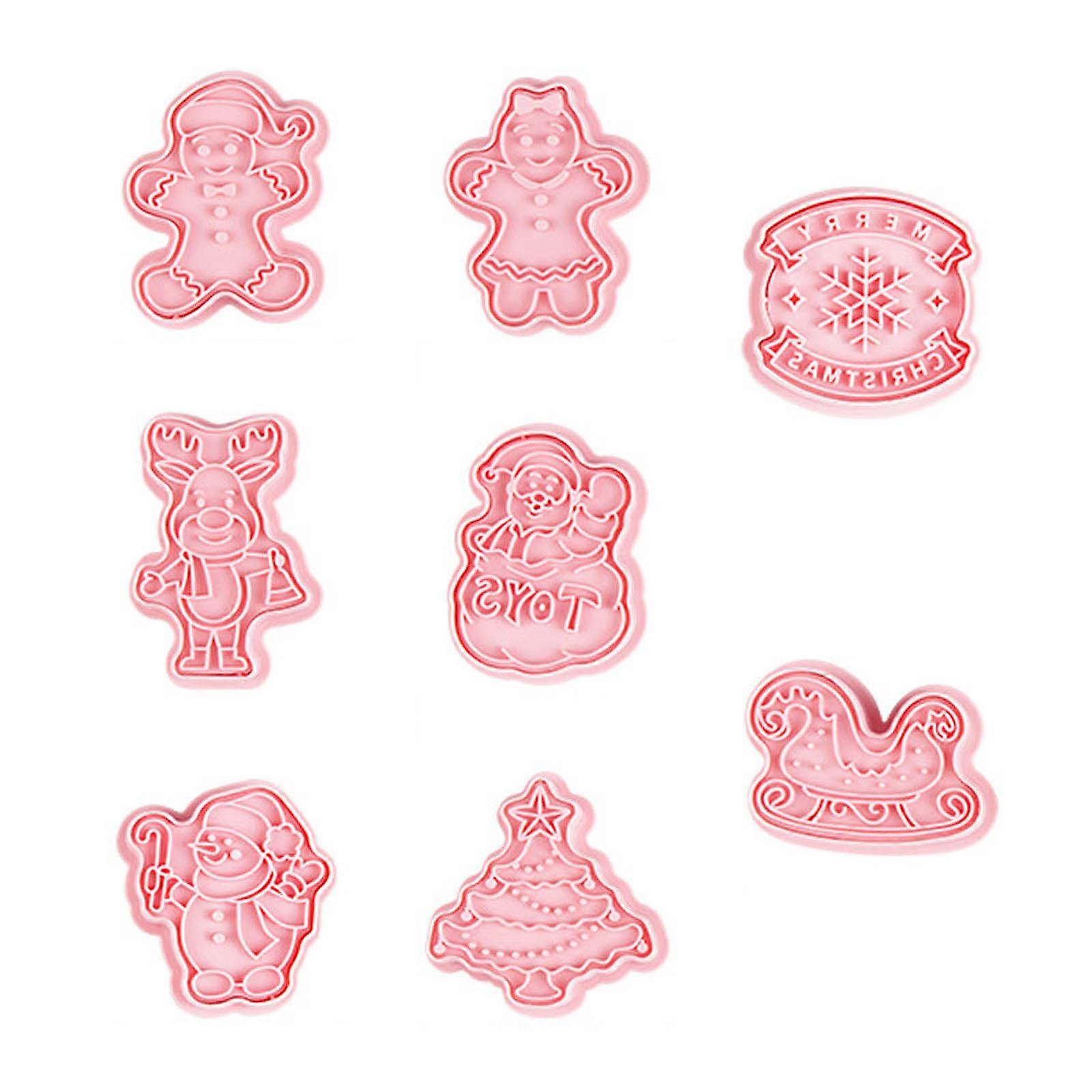 Set of 8 Cookie Cutters 3D Pressable Biscuit Cutters Xmas Series Cookies Cutters