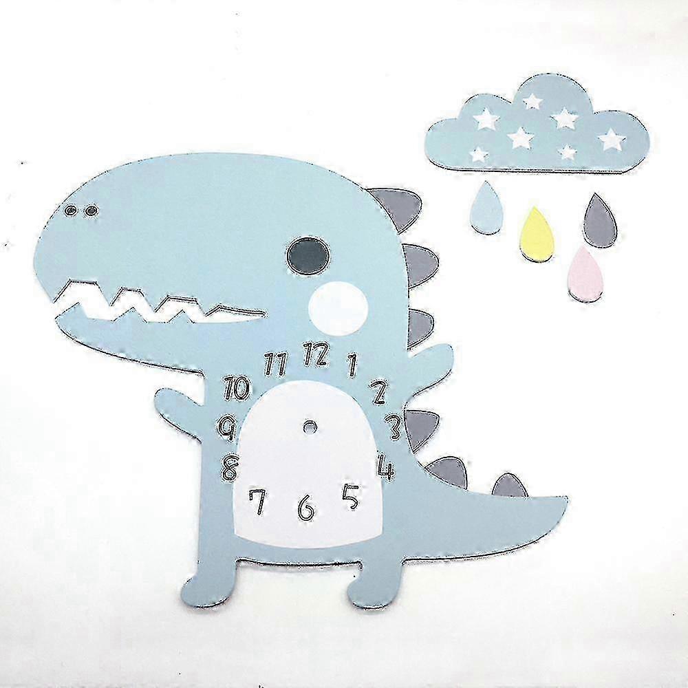 Silent Kids Wall Clock Dinosaur with Clouds, No Ticking Noise, Multi-Color Option