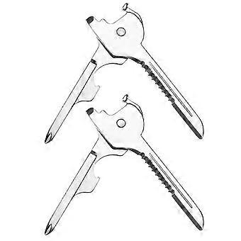 Silver Key Chain Multi-Function Miniature Key with Flat-Head Screwdriver 2Pcs