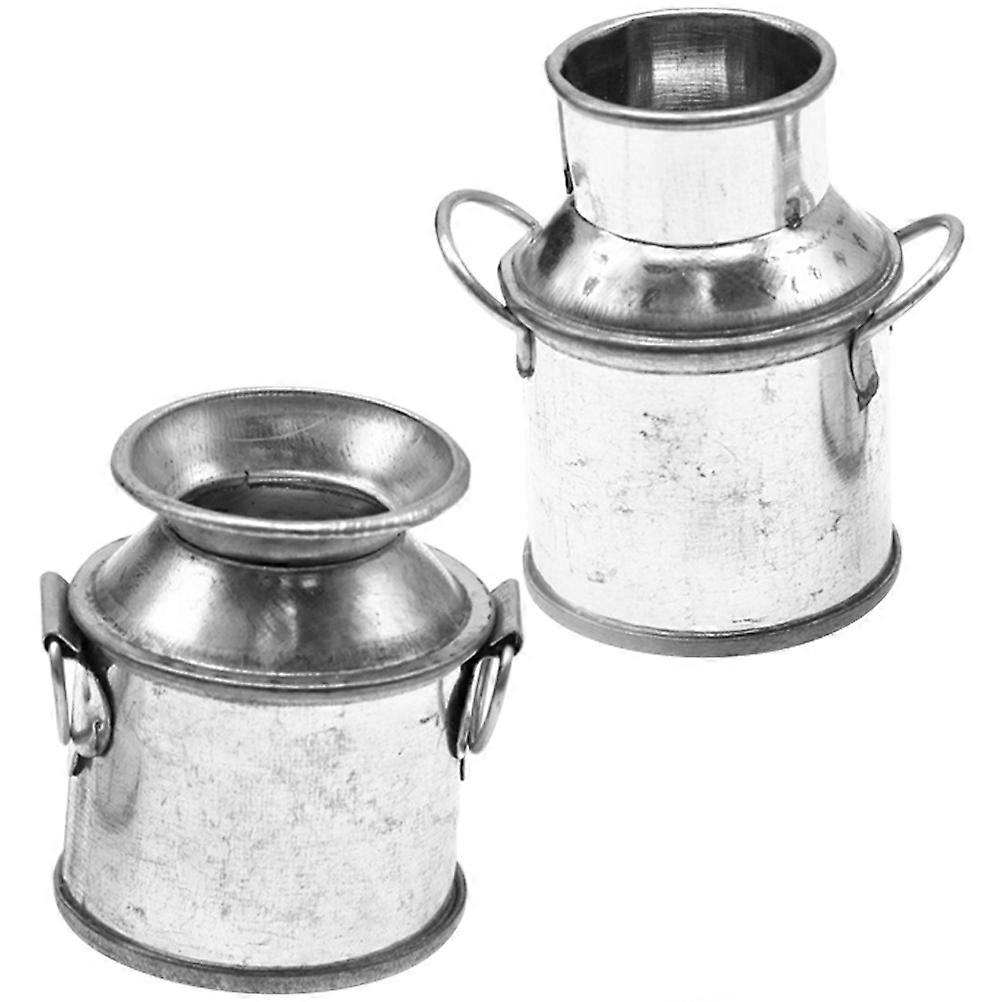 Silver Miniature Alloy Buckets for Storage Use with Realistic Appearance and Lightweight Design 2 Pieces