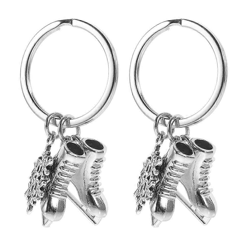 Silver Sliding Keychain with Ice Skate and Snowflake Design 2Pcs for Winter