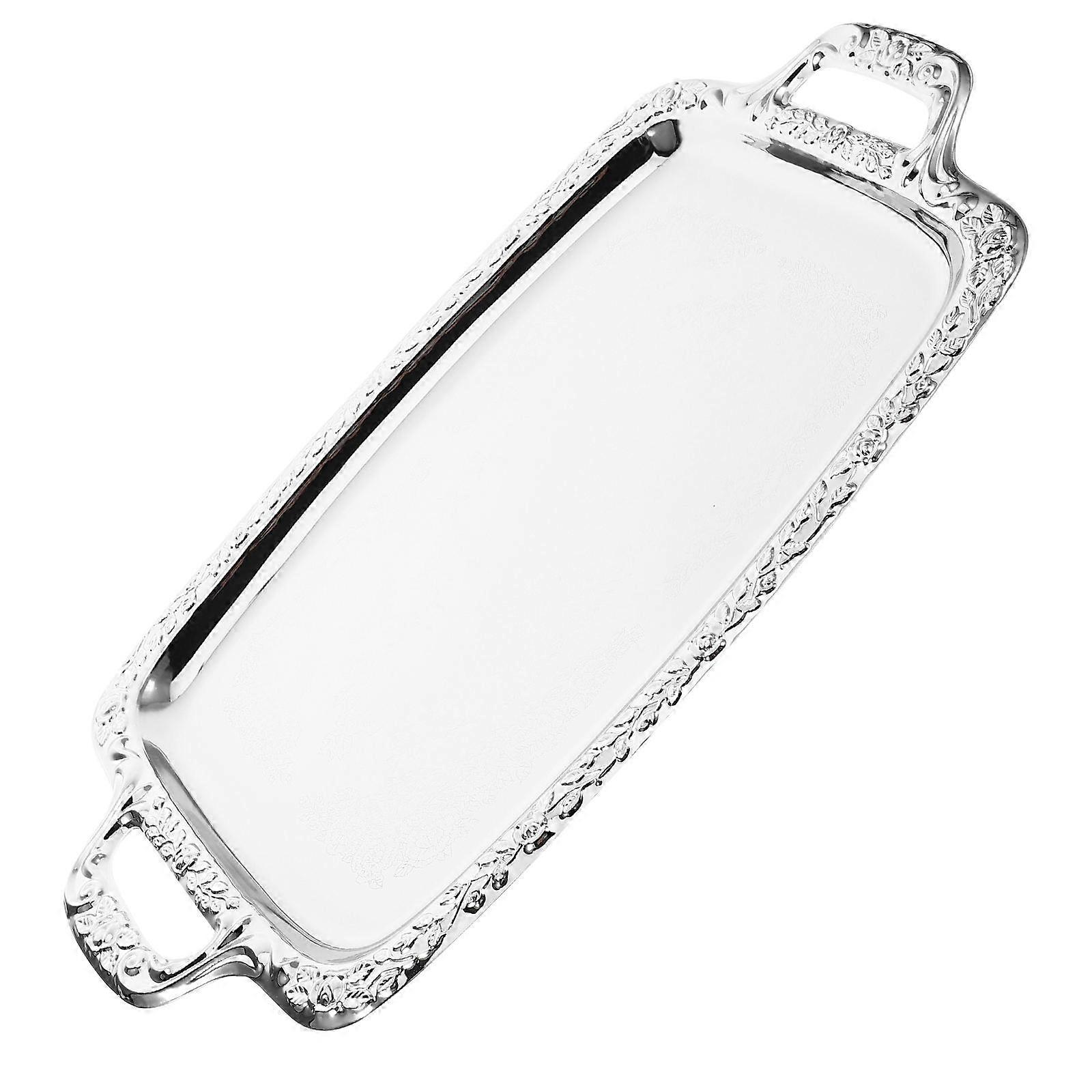 Silver Stainless Steel Serving Plate for Kitchen Use in Rectangular Shape