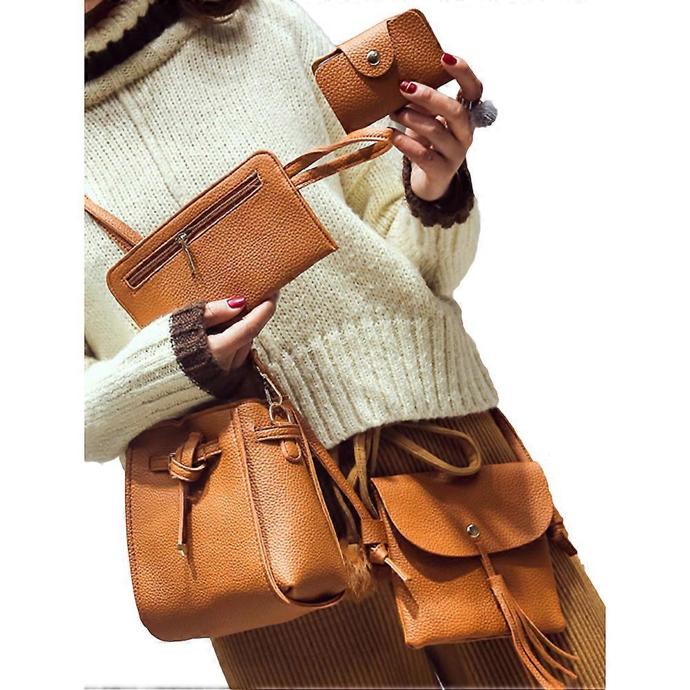 Simple Lychee Pattern Belt Four-Piece Single-Shoulder Crossbody Bag Set Dark Brown