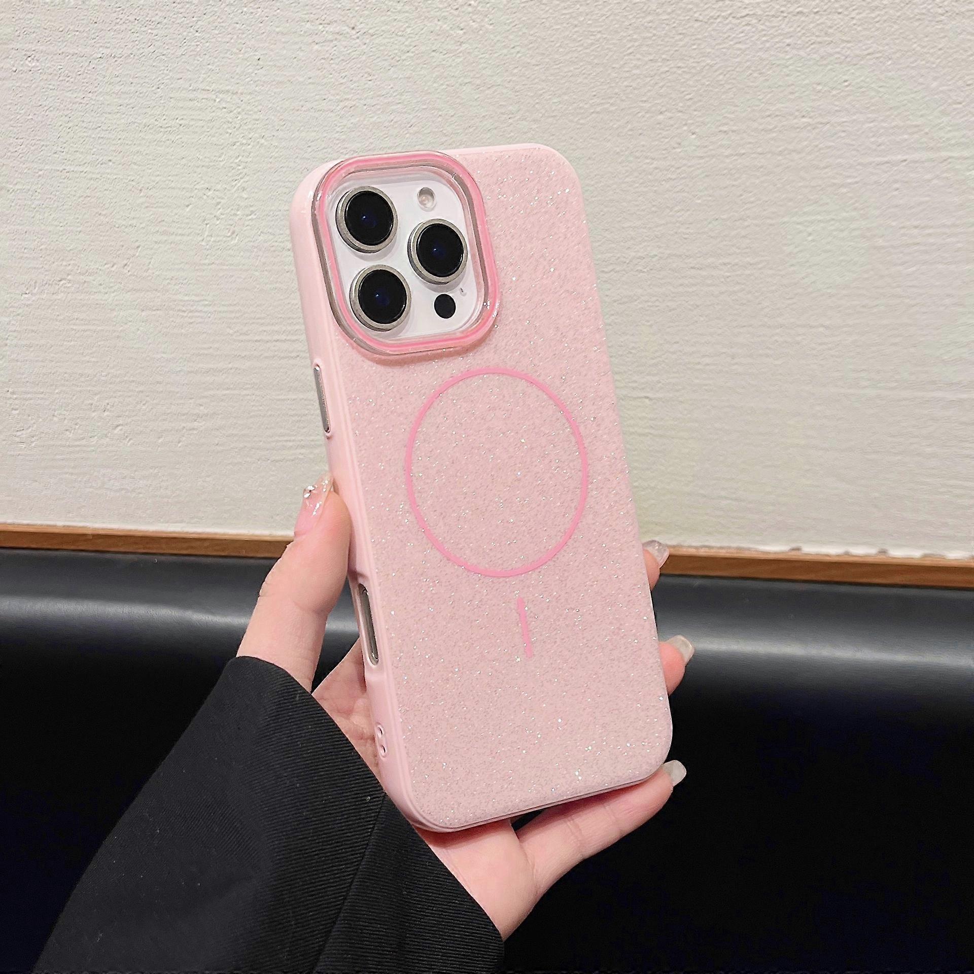 Simple solid color glitter magnetic case for Apple iPhone 16 Pro Max, full-coverage soft protective case