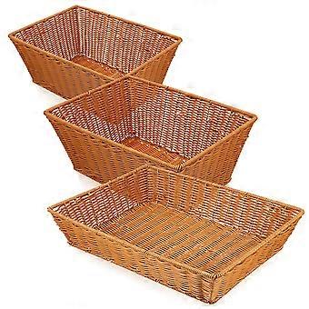 Simulated Rattan Storage Basket Rectangular Bread Storage Light Brown Iron Frame Display 3Pcs