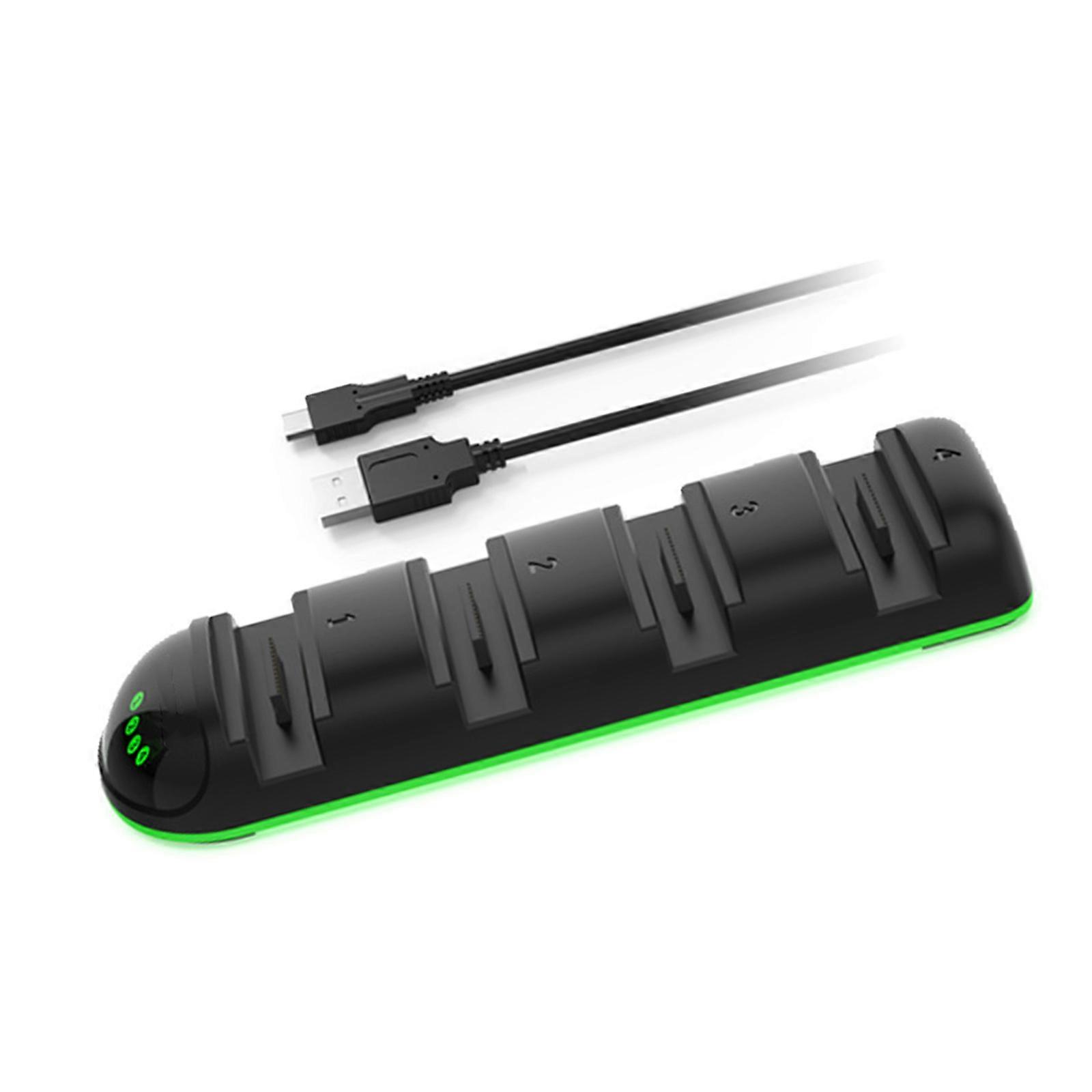Features: Charges up to four consoles controllers simultaneously with this small dock, featuring build in small chip for stable current output to prevent overcharging and extend battery. Crafted from strong ABS, the space saving design includes a bottom LED light strips that provides real time charging status via color changes while adding a modern aesthetic. Ideal for mobile gamers and multiplayer enthusiasts who demand uninterrupted play time during travel, parties, or extended gaming meeting . Keep controllers ready on your gaming desk, entertainment center, or packed in luggage for on the go charging without bulky equipment. The plugs and play functionality eliminates setups hassles, offering a streamlined solution to power two pair at once while enhancing your gaming setups's visual appeal. Specifications: Material: ABS Length: about 158mm/6.22inch Package Includes: 1xController Charging Dock note: 1.Please allow 1-2cm errors due to manual measurement, make sure that you do not mind before you order. 2.Due to the differences between different monitors, the picture may not reflect the actual colorful of the item.