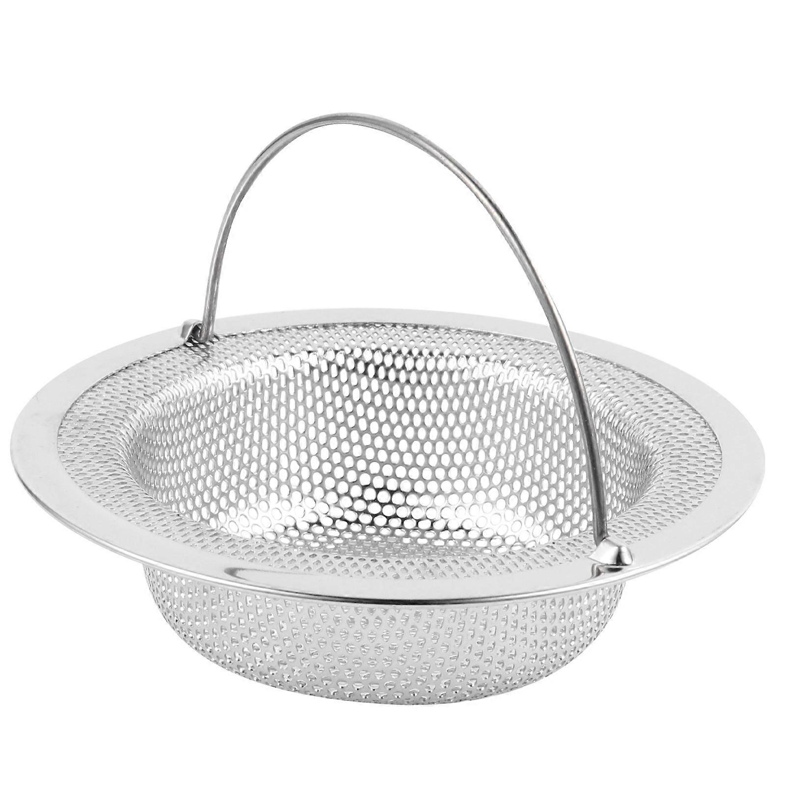 Polishing on surface and ensures the safety during using and avoid any hurt to your hands. Efficient anti-clogging shield lets liquid flow seamlessly into the drain while it blocks food particles. Stainless steel sink strainer fits most sink drains and garbage disposals.micro perforations the strainer efficiently prevents even the smallest food particles from going through. Debris are caught while liquid goes through unrestricted. Features - Color: Silver. - Material: Stainless steel. - Size: 11.00 x 8.00 x 3.00cm/ 4.32 x 3.14 x 1.18 inch. - The kitchen sink strainer, you can choose according to the width and depth of the sink drain. - The sink strainer basket is made of stainless steel, sturdy and durable, won’t pit, rust or corrode. - It can be stabilized in the sink drain and will not move with water flow. - This sink drain strainer has added a new handle for easier lifting. - Which makes dumping out residue so easier, no longer worry about the drain strainer stuck in the sink. - The kitchen sink drain catcher uses pinhole design, which can block more food particles. Package list: 3 x floor drain
