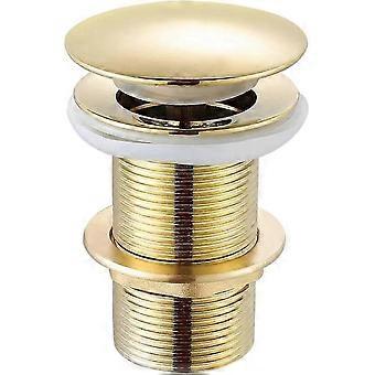 Sink drain with overflow hole, split spring plug, brass, chrome gold