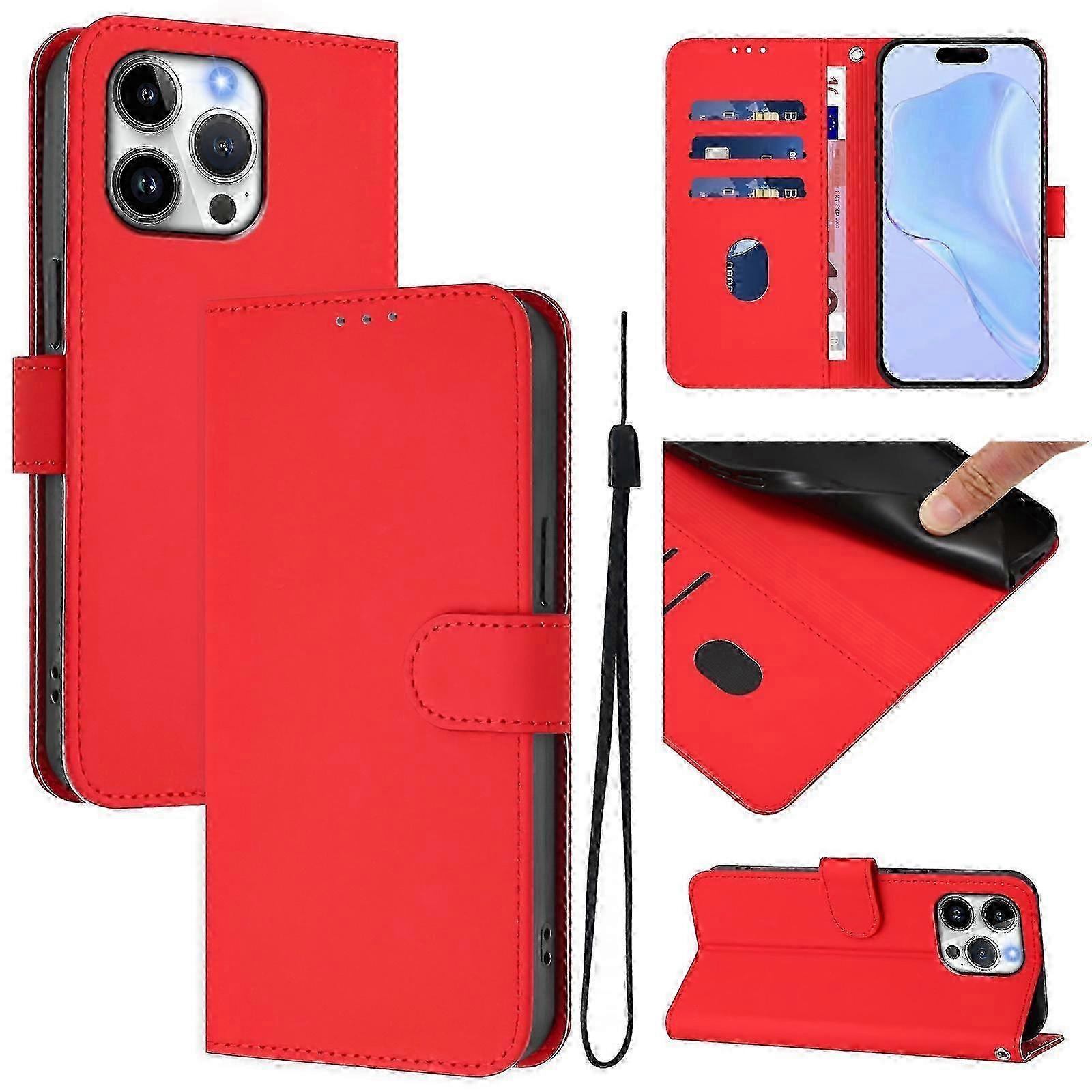 Skin Feel Solid Color Leather Phone Case with Lanyard