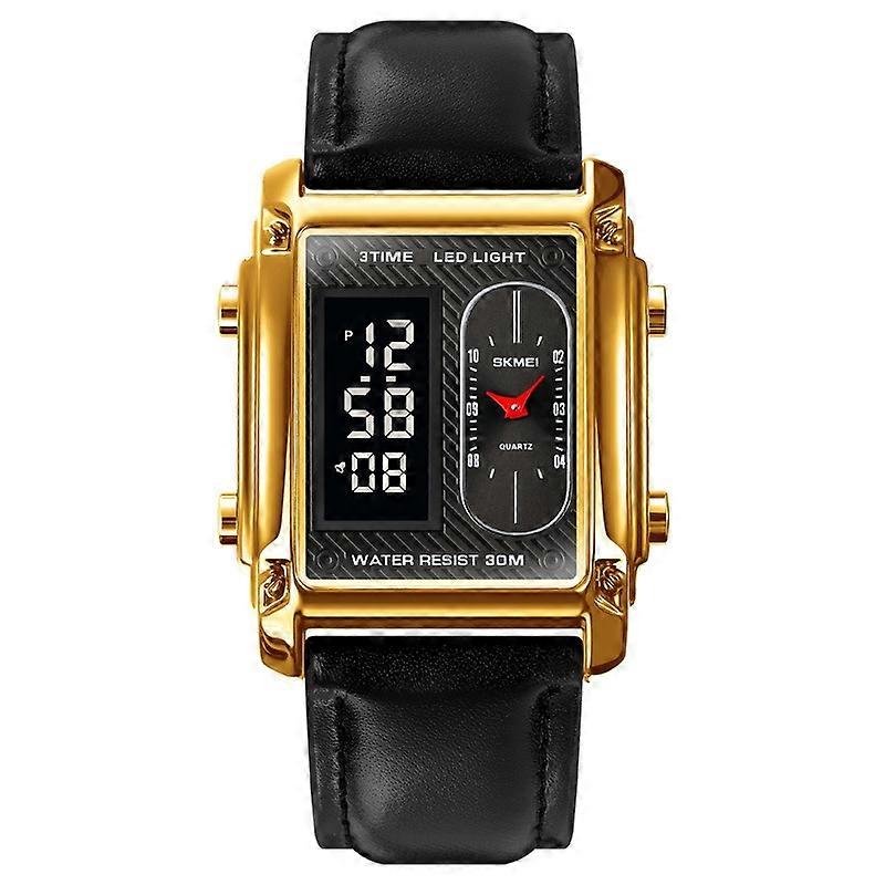 SKMEI 1868 Square Double Display Waterproof Men Watch, Style: Leather Belt (Gold)