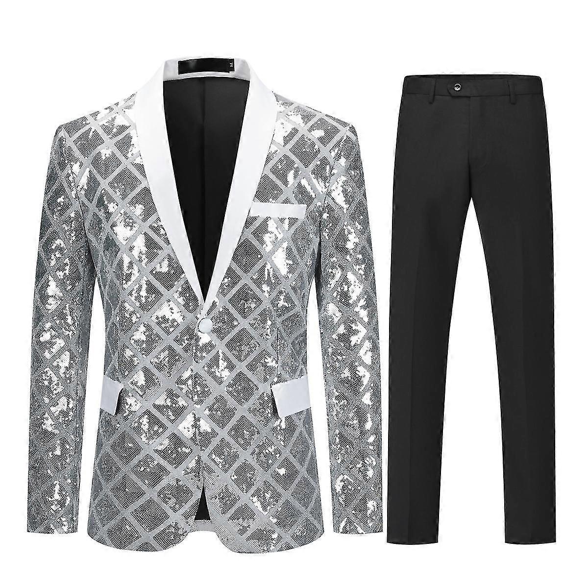 Sliktaa Mens 2pce Suit Host Performance Wedding Diamond Sequin Blazer And Pants