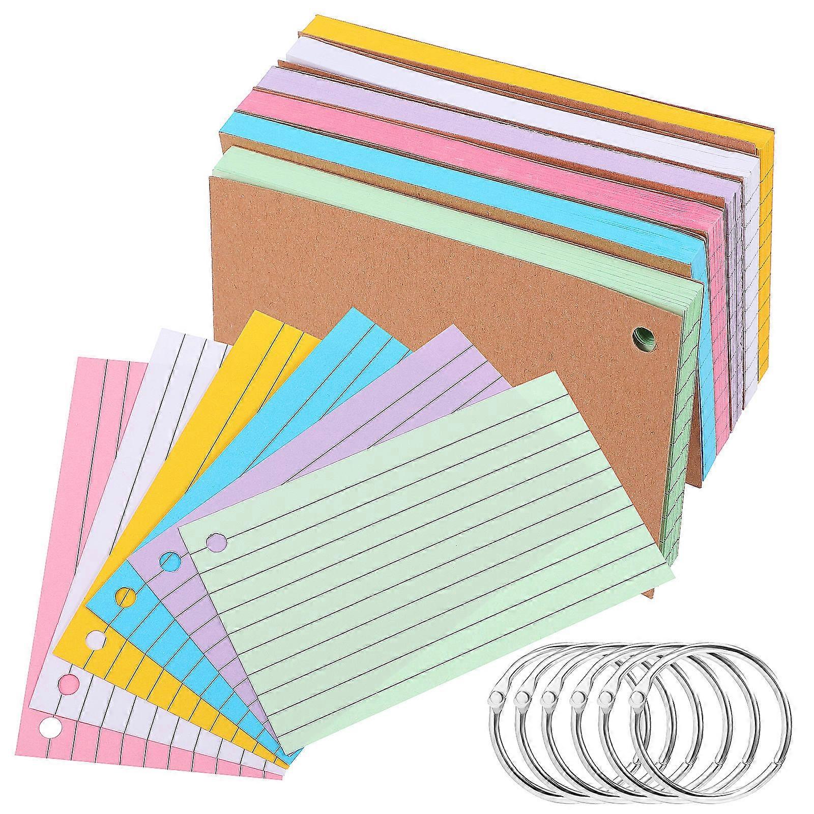 Upgrade your study routine with our Memo Pad Set and simplify your information management! The thick cover allows that the inner pages remain protected from bending or damage. With a variety of colors and ample quantity, you can easily differentiate and categorize your notes according to your preferences. Features -Color:Assorted color -Material:Paper -Size: 12.70X7.50X0.80cm/4.99X2.95X0.31in -Note: 50 pages each index card - Easy Writing: The double-sided lined format helps in organizing information systematically, making it easier to review and study. - Page Protection: The thick cover not only protects the inner pages but also adds a layer of durability, ensuring your notes remain intact. - Color Options: With various colors available, these note cards can be easily coded for different subjects or topics, easy to distinguish. - Portable Notepad: The included ring allows you to bind the cards together, making them easy to carry without losing any pages. - Study Aid: These index cards are an excellent tool for studying, allowing you to down key points, vocabulary, and important notes. Package list: 6 x index card with ring
