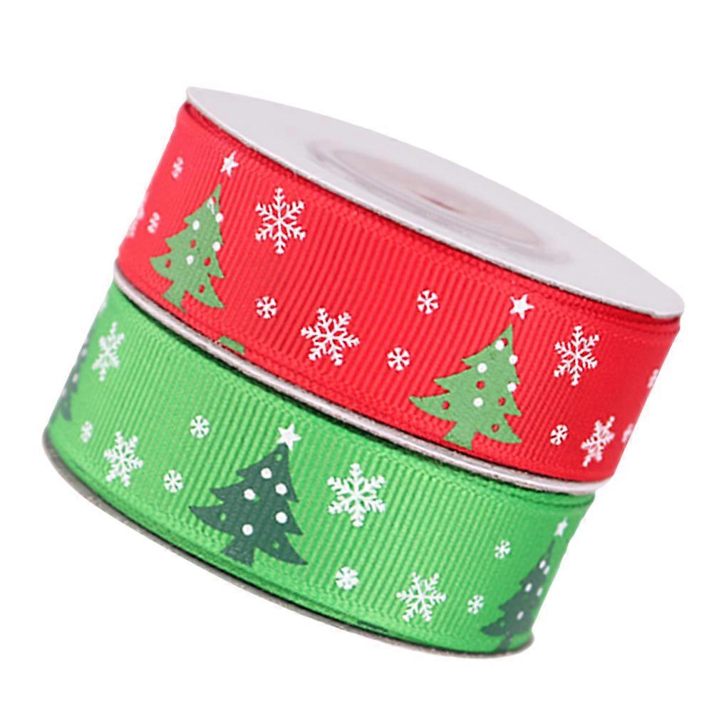 Snowflake Pattern Bow Ribbon Christmas Trim Red Craft Decoration 2CM Width 10 Yards Length Double Side 2 Rolls