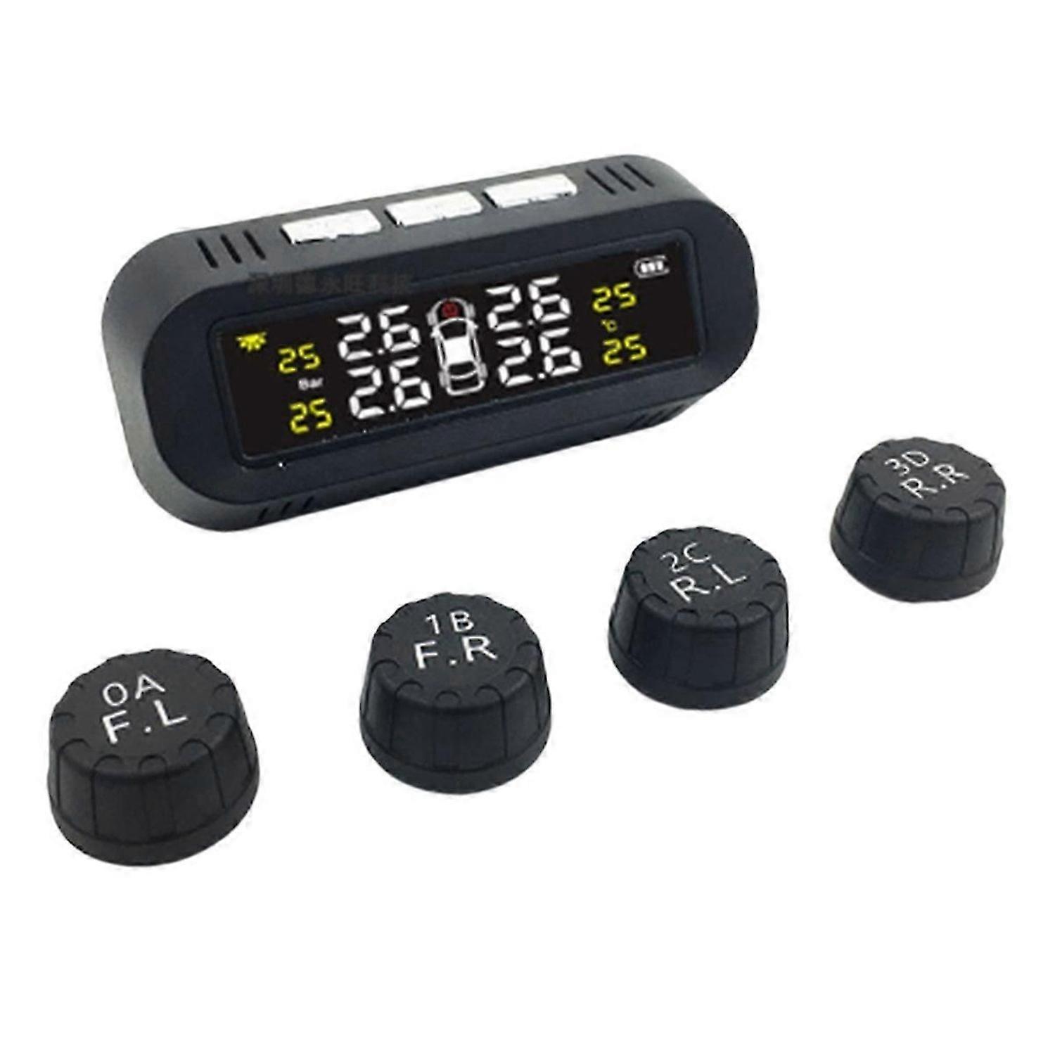 Solar Tire Pressure Monitoring System Temperature Warning Save with 4 External Sensors Car Tyre Pressure Monitor