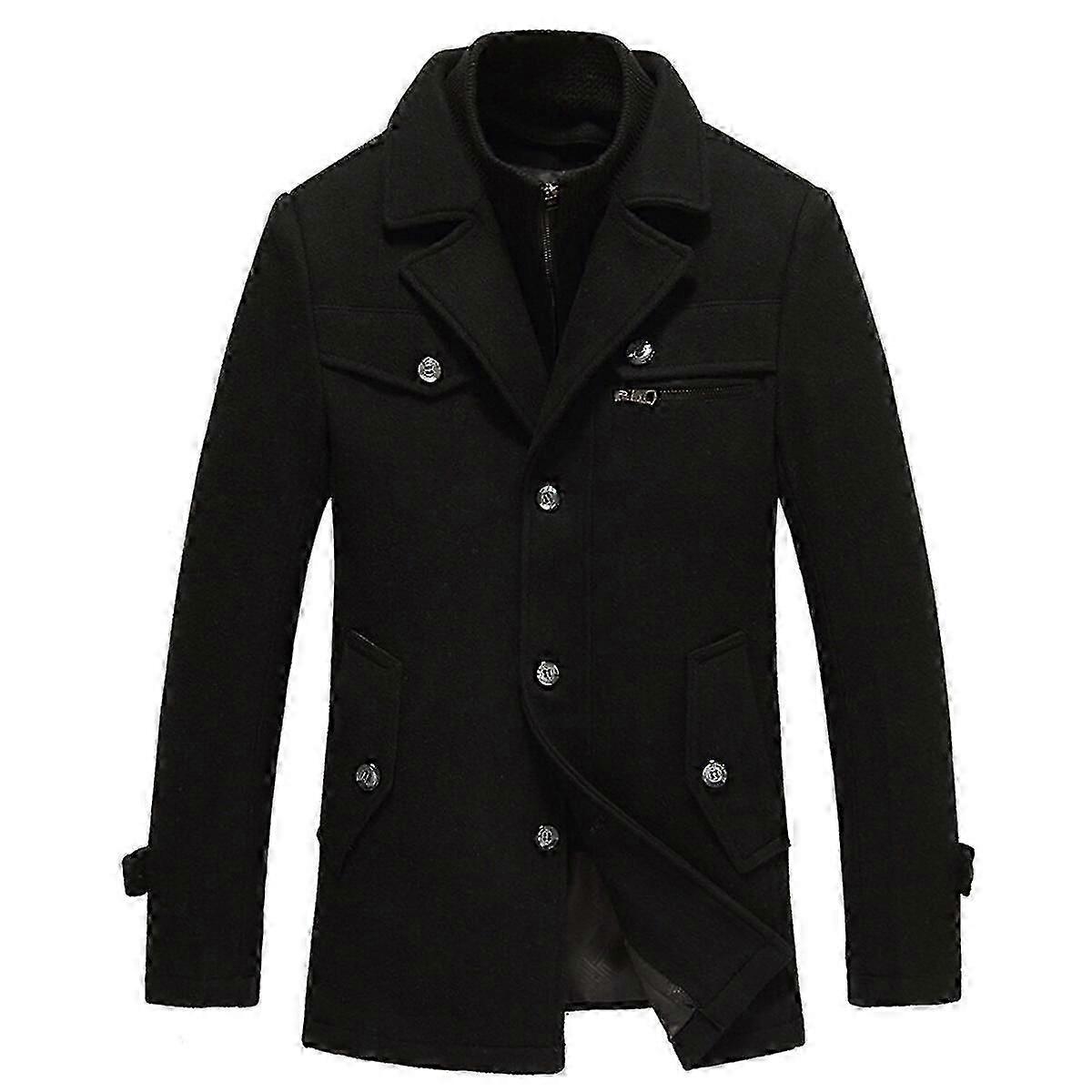 SQLX New Allthemen Mens Wool Casual Mid Length Solid Button Coat HK