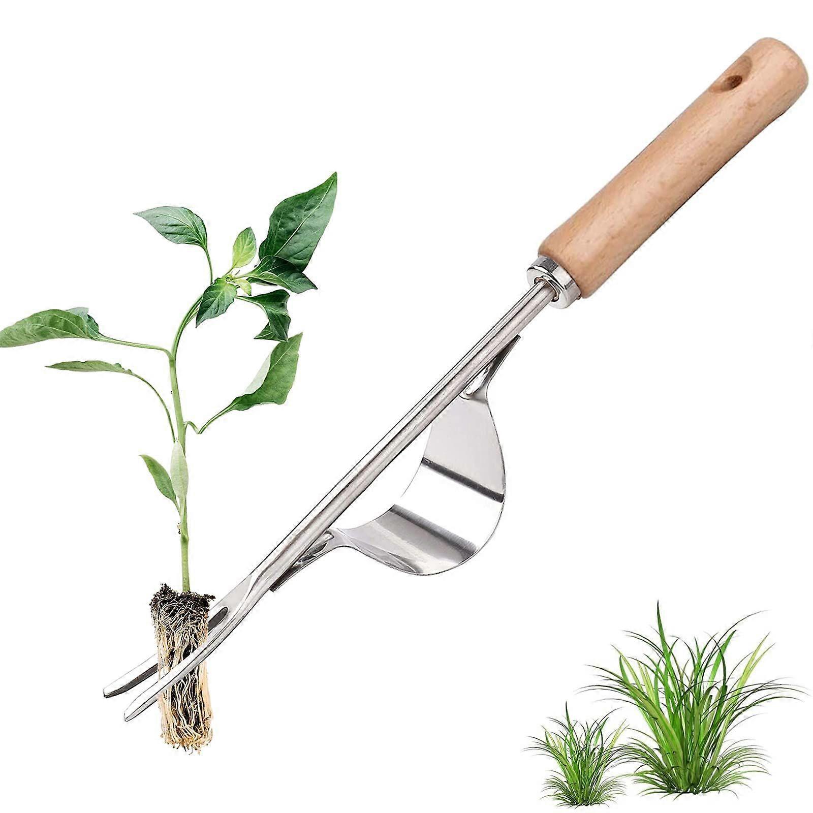 Stainless Steel Manual Weeder with Wooden Handle Tool Used for Quick Weeding of Soils and Gardens Y-Shape Manual Weeding Root Fork.