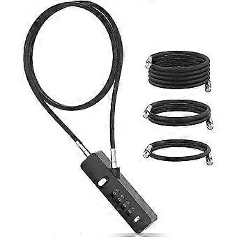 Steel Cable Lock for Lockers with 4-Digit Combination, 3 Adjustable Lengths in Black (1pc)