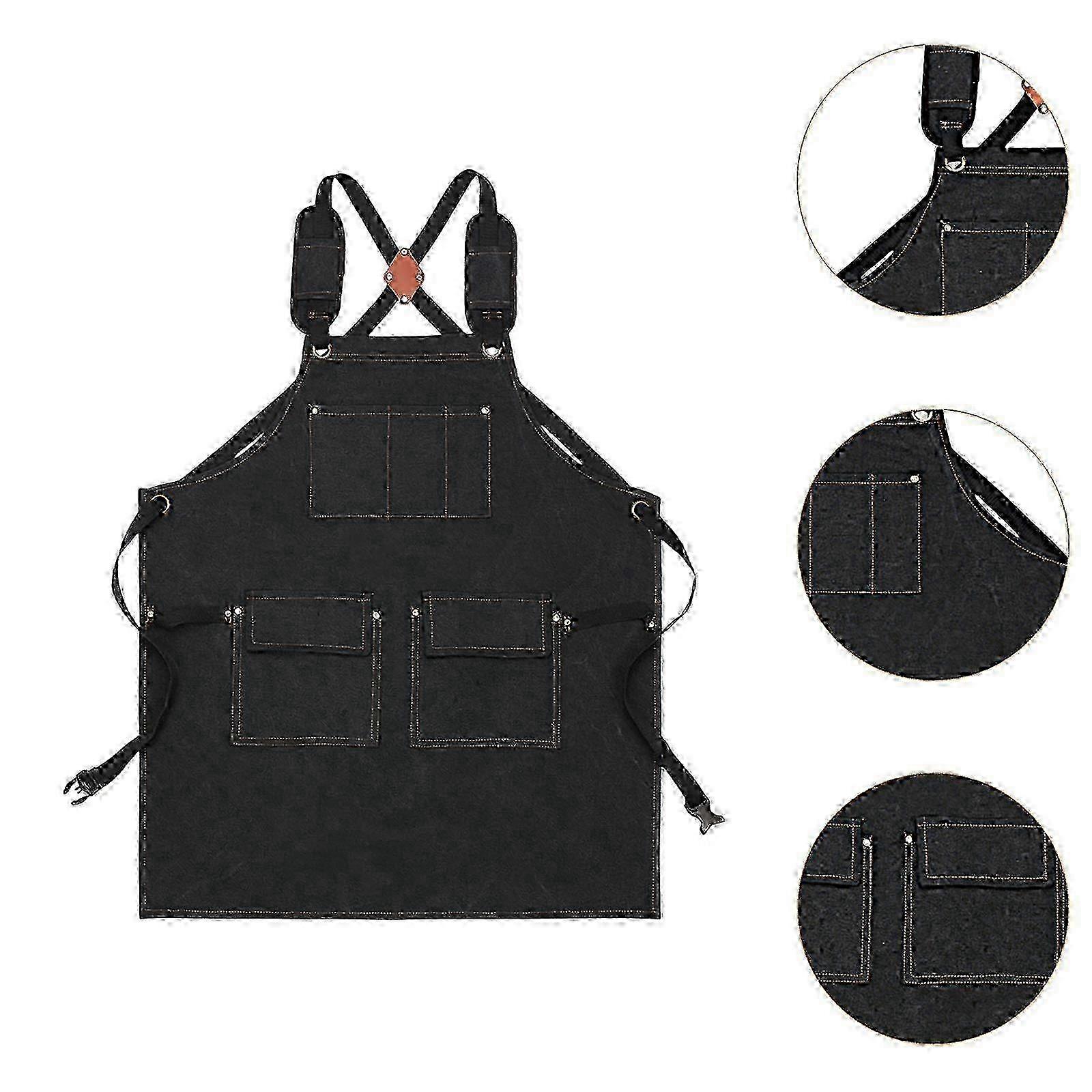 Sturdy Cross Back Canvas Kitchen Apron for Painting and Pottery, Black