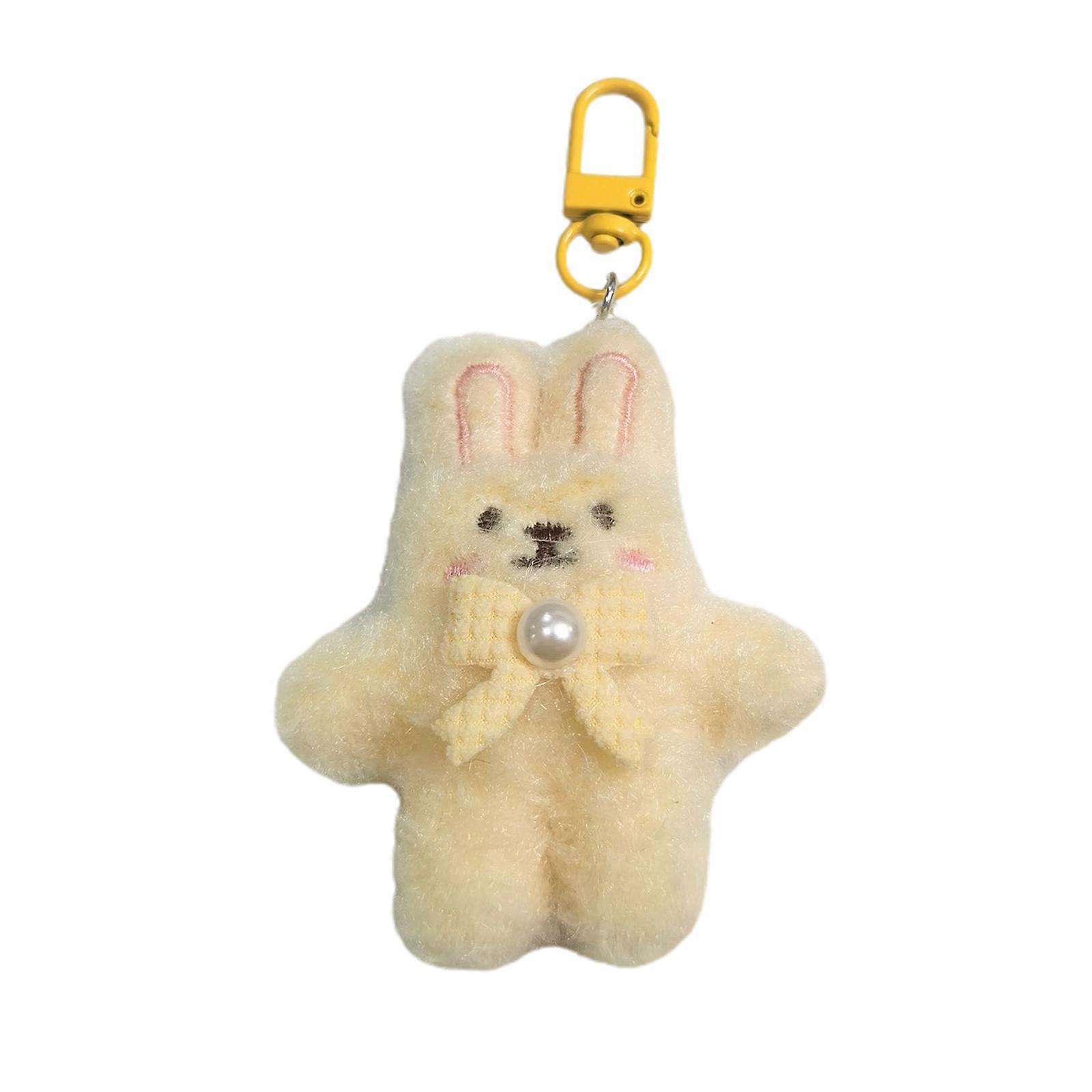Sweet Plush Rabbit Keychain Charm Lovely Plush Rabbit Charm Keyring With Pearls Tiew Keychain Pendant For Any Age Yellow