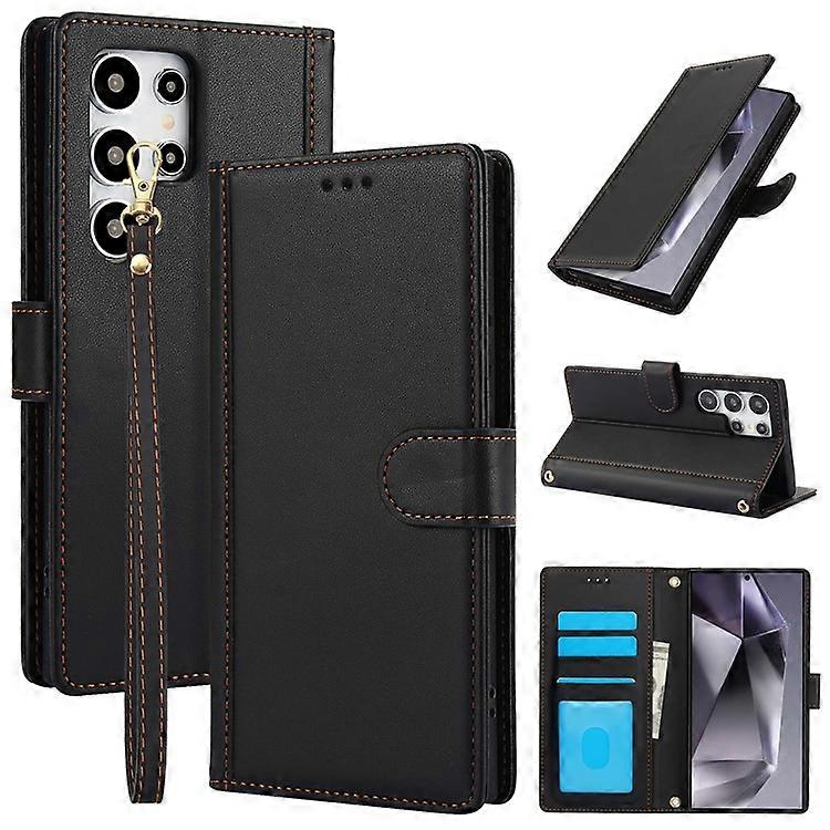 SY-003 Compatible For Samsung Galaxy S25 Ultra Case PU Leather Stand View Phone Wallet Cover with Hand Strap