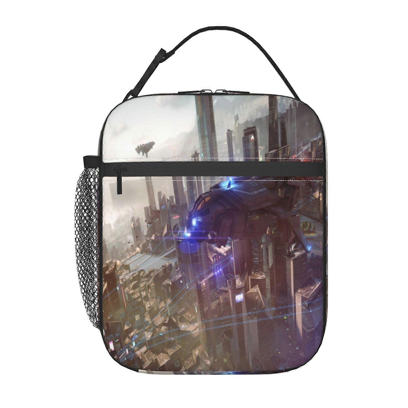 t180 Future City Shadow War Lunch Bag Transparent Front Panel, Quick-View Design Without Opening, Time-Saving for Busy Professionals j180