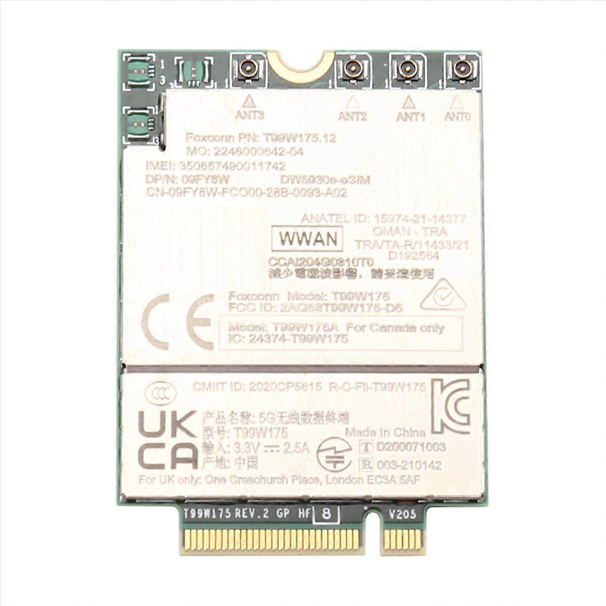 T99W175 is designed to enable wireless data connectivity for laptop or any Other devices compatible with PCI Express M.2 slot specification 3042 type key B. T99W175 is the data card solution that offers wireless wide area network (WWAN) Connectivity DW5930E T99W175 5G module, X55 high performance. Supports the following for machine models: for 9420 2 in 1 9430 2 in 1 9520 2 in 1 7560 7760 Color:As Shown Material:Metal+Plastic Package Contents: 1 * Module Only the above package content, other products are not included. Note: Light reflection and different displays may cause the color of the item in the picture a little different from the real thing. The measurement allowed error is +/- 1-3cm.