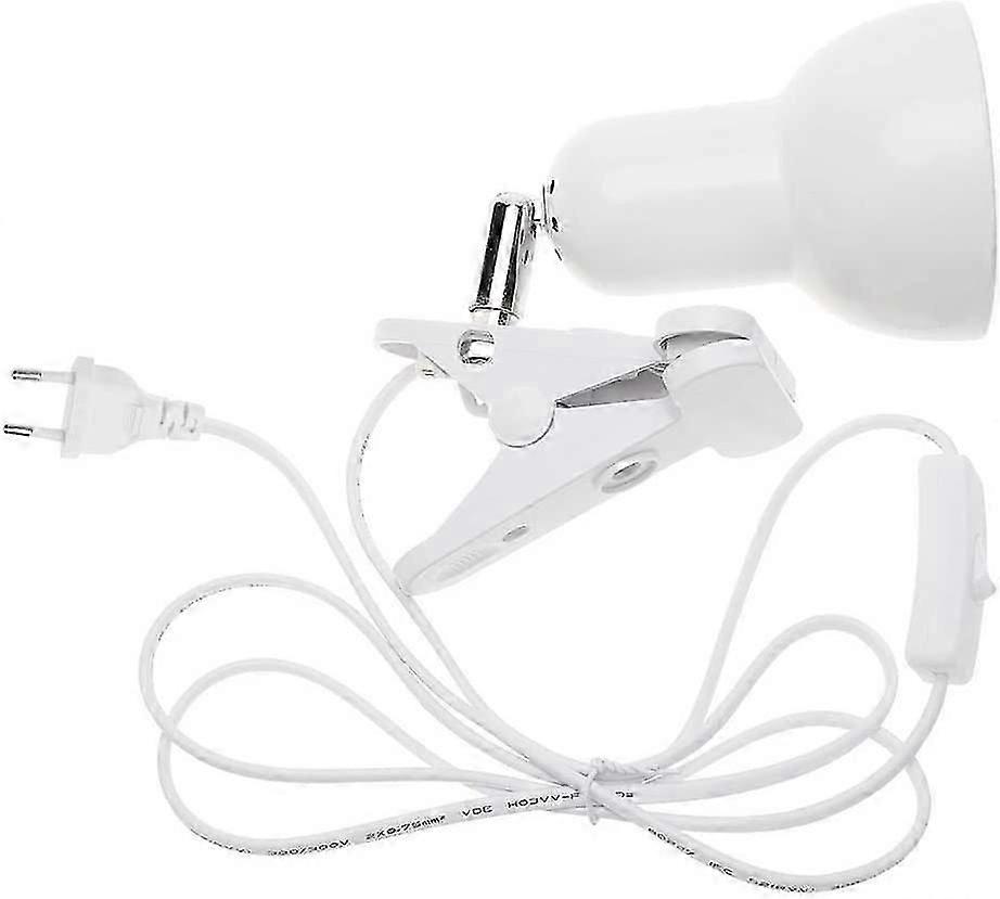 Table Lamp Holder Clamp Desk Lamp 360 Degree Rotation E27 Bulb Socket Holder Lamp Base with Switch Wire Tortoise Fish Tank (White)