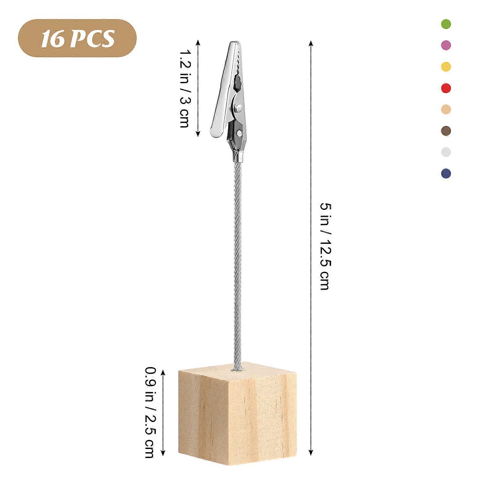These tabletop card holders are made of stainless steel wire clip and wooden base materials for use. Suitable for many occasions. Decorative and simple design, chic and . A simple but beautiful way to display photos or name cards, memos, place cards, and more. Features - Color: Assorted color. - Material: Wood, stainless steel. - Size: About 12.50X2.50X2.50cm/4.91X0.98X0.98in. - Decorative holders: the fine details and bright colors make these clip holders add an elegant feel to the party scene. - & : made of , not easy to break off, stand steadily on the desktop. - Stable placing: the base is super stable, remain in standing position steadily, over. - Clip various cards: excellent for holding photos, table numbers, memos, messages, notes, name cards, etc. - Widely used: can be as place card holders on wedding, offices, anniversaries party, home parties, etc. Package list: 16 x Table Number Holders