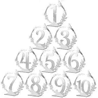 Table Number Signs For Weddings And Events With 10Pcs Acrylic Stands In Elegant Silver Finish