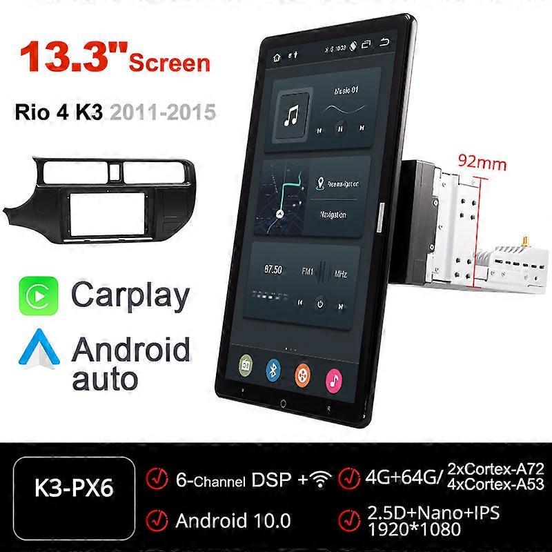 Tesla PX6 Android 10 Car DVD Player Rotatable 1920*1080 IPS Navigation GPS Multimedia Stereo Audio For KIA K3 RIO 4 2011-2015