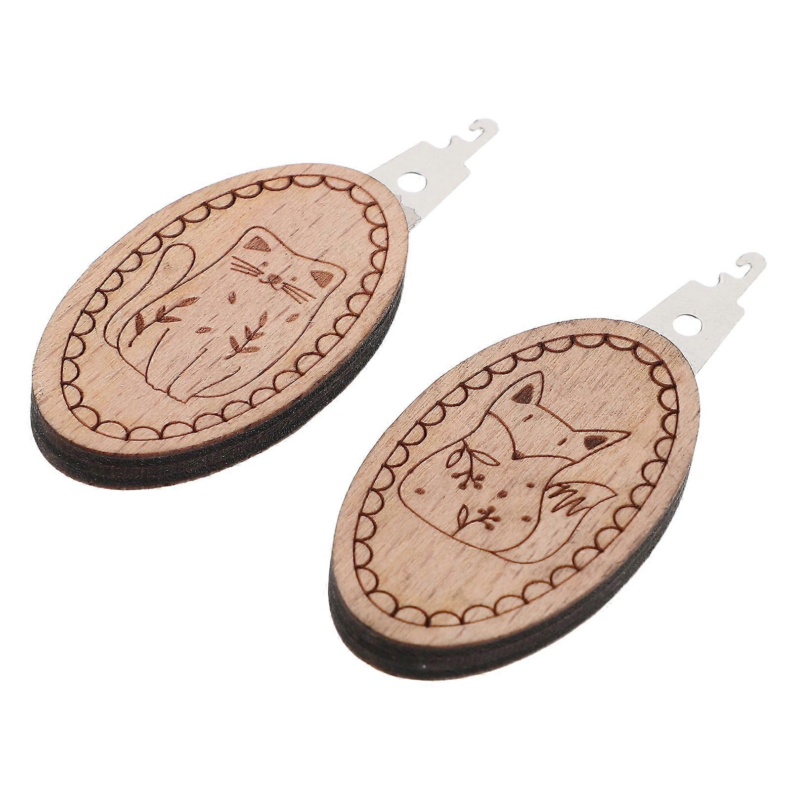 Threading Device Embroidery Needle Threader With Wood Handle For Diy Projects Quick Threading Tool 2Pcs