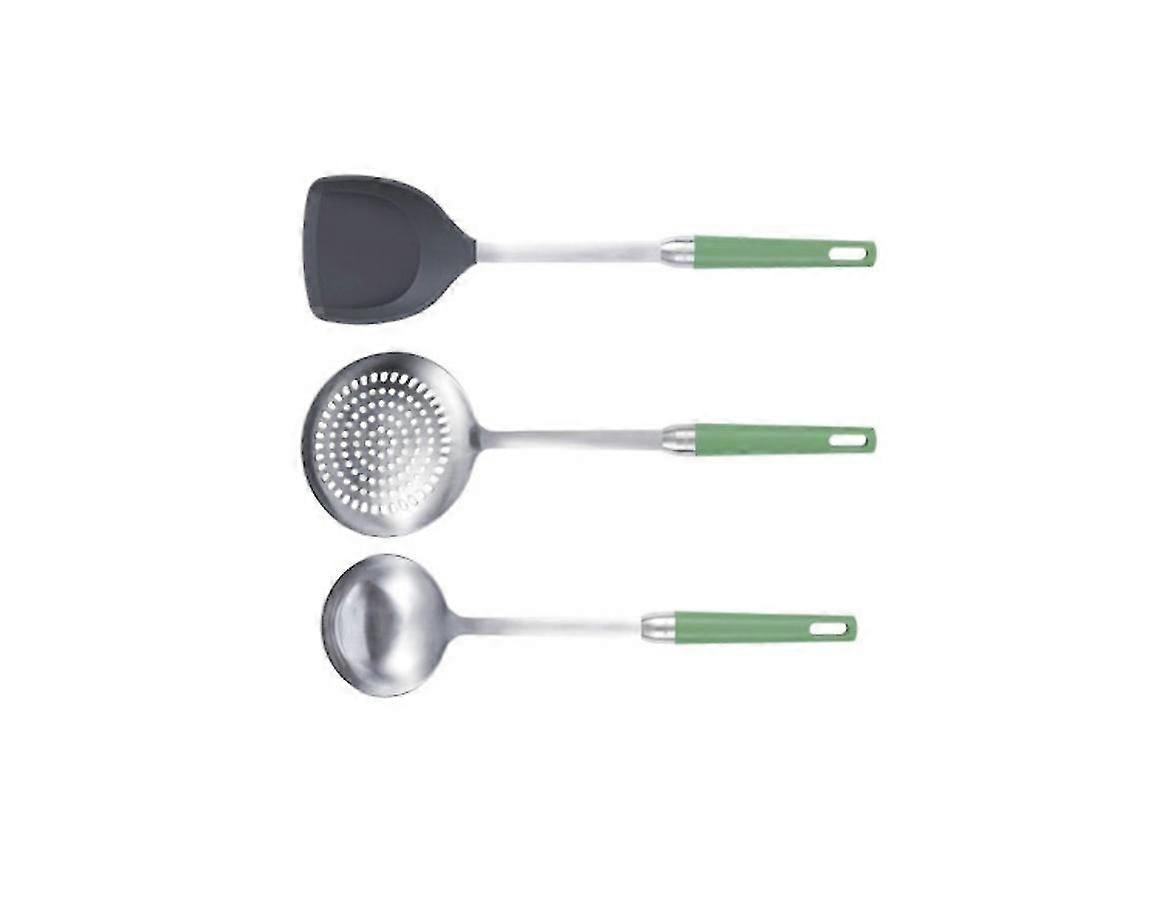 1. Main material: 304 stainless steel, ABS, silica gel 2. Configuration: spatula, spoon, colander Features: 1. SUS304 stainless steel material, high hardness, good toughness, good corrosion resistance 2. Cylinder-style extended handle design, cookware is easier to grasp, easy to use, not hot 3. Food-grade silicone contact, stable quality, BPA-free, soft skin, sturdy steel structure of the spatula, friendly to the coating of pots and pans