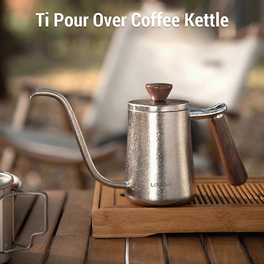Ti Pour Over Coffee Kettle Gooseneck Coffee Pot with Wood Handle for Outdoor Camping