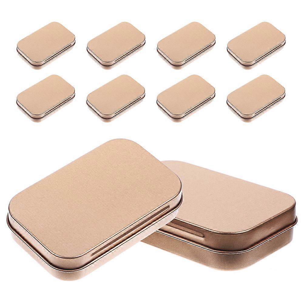 The compact design of these mini containers makes them ideal for travel or everyday use. Their sturdy construction ensures that your belongings are protected, while the hinged lids provide easy access. Use them to store beads, earrings, or other small items, and keep your space tidy and organized. Features -Color:Golden -Material:Tinplate -Size:9.50X6.00X2.10cm/3.73X2.36X0.83in -Versatile use: great for organizing cards, keys, jewelry, and other small items, making your space tidy. -Smooth matte finish: the surface of the tin box is treated with a matte process, offering a smooth touch and modern look -Durable tinplate: constructed from practical tinplate, it is sturdy, waterproof, and dustresistant, protecting your belongings -Portable size: its compact size makes it easy to carry, suitable for travel, office, and more -Wide applications: can be applied to store various tiny things, such as lip balms, mini candles, keys, beads, USB cables, teas, herbs, fishing lures or hooks, holiday cards, cash, or any other small items Package list: 2 pcs x 10pcs
